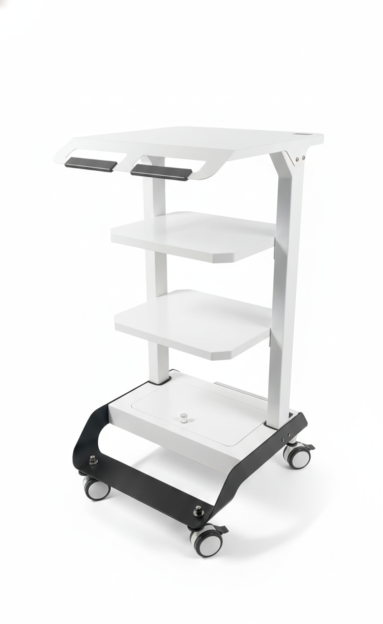 CHC-MED — Carro soporte esencial con gaveta inferior y opción de soporte para monitor.