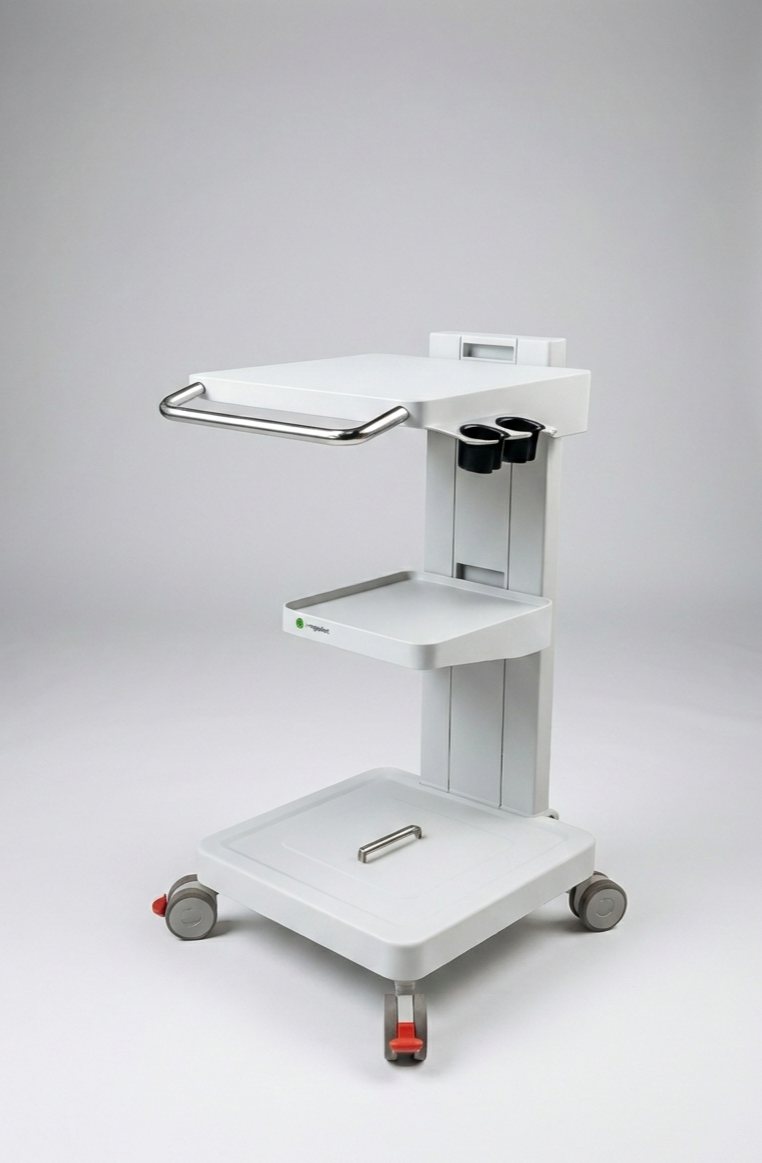 ECO-MED — Soporte para ecógrafo portátil con diseño moderno, canal de cables y multitoma.